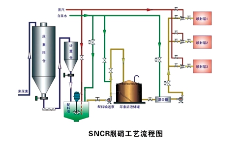 選擇性非催化還原(Selective Non-catalytic Reduction,SNCR)脫硝技術(shù),指在沒有催化劑存在的條件下,利用還原劑(氨、尿素等)將煙氣中的NOx還原成N2和H2O。