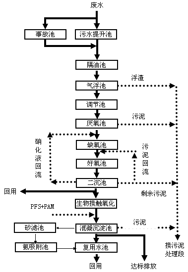 根據(jù)以上焦化廢水的特點(diǎn),結(jié)合國(guó)內(nèi)外焦化廢水處理的先進(jìn)經(jīng)驗(yàn),確定生化處理采用內(nèi)碳源A2/02(厭氧-缺氧-好氧-生物接觸氧化)生物脫碳、氮處理工藝,這樣不僅能有效地除去廢水中的有機(jī)污染物,而且對(duì)氨氮污染物也有較好的去除效果。