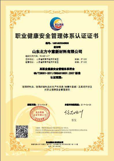 隨著雙層油罐及大口徑玻璃鋼煙囪的快速推向市場,公司產(chǎn)品市場越來越高端化。新的發(fā)展形勢和面對高端客戶的需要,公司質(zhì)量管理及環(huán)境和職業(yè)健康要求越來越高。通過公司上下的共同努力,公司于2016年6月順利通過ISO9001質(zhì)量體系和ISO14001環(huán)境體系及OHSAS18001職業(yè)健康體系三證認(rèn)證,標(biāo)志著公司逐步邁向規(guī)范化發(fā)展的道路。